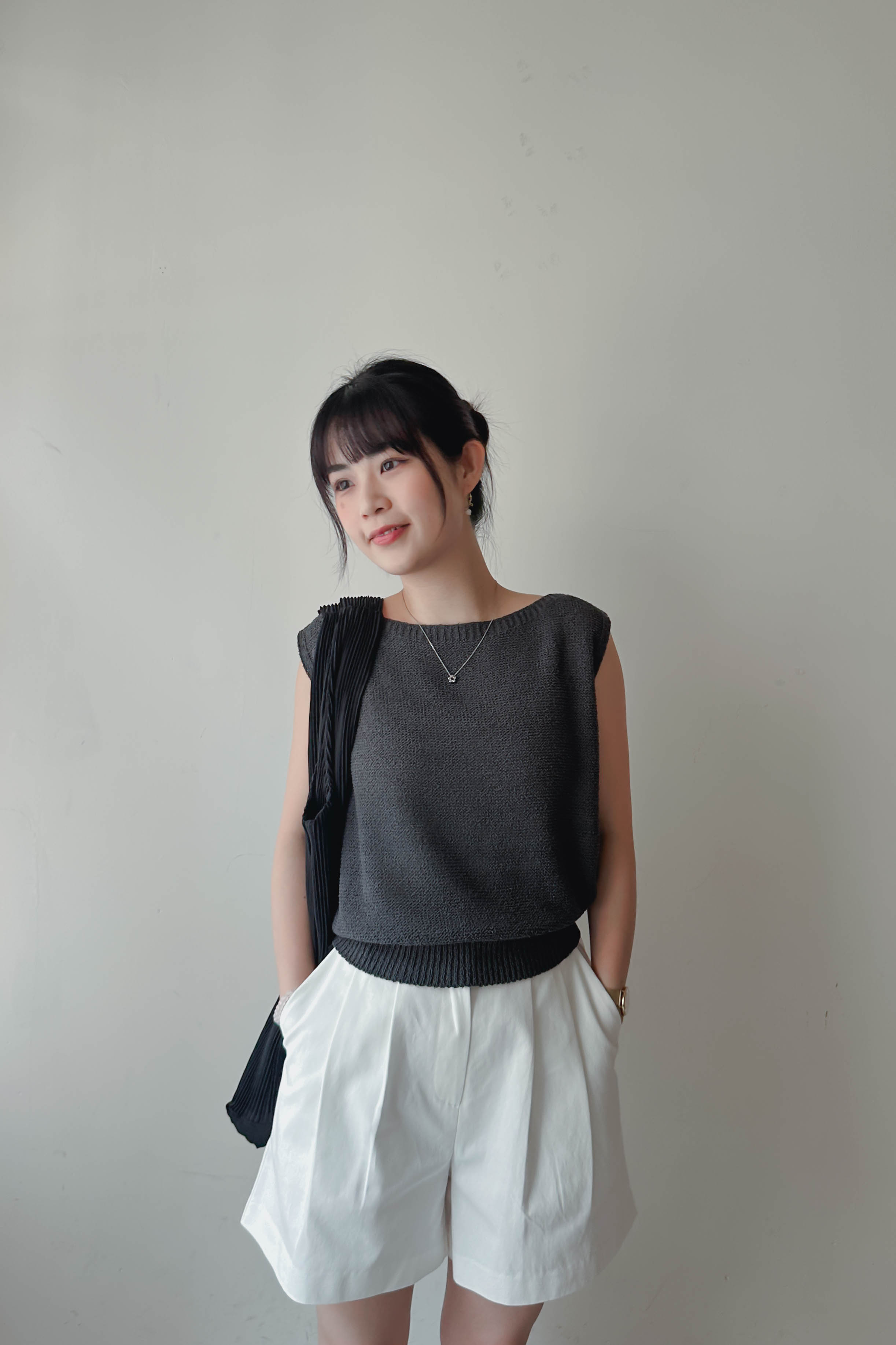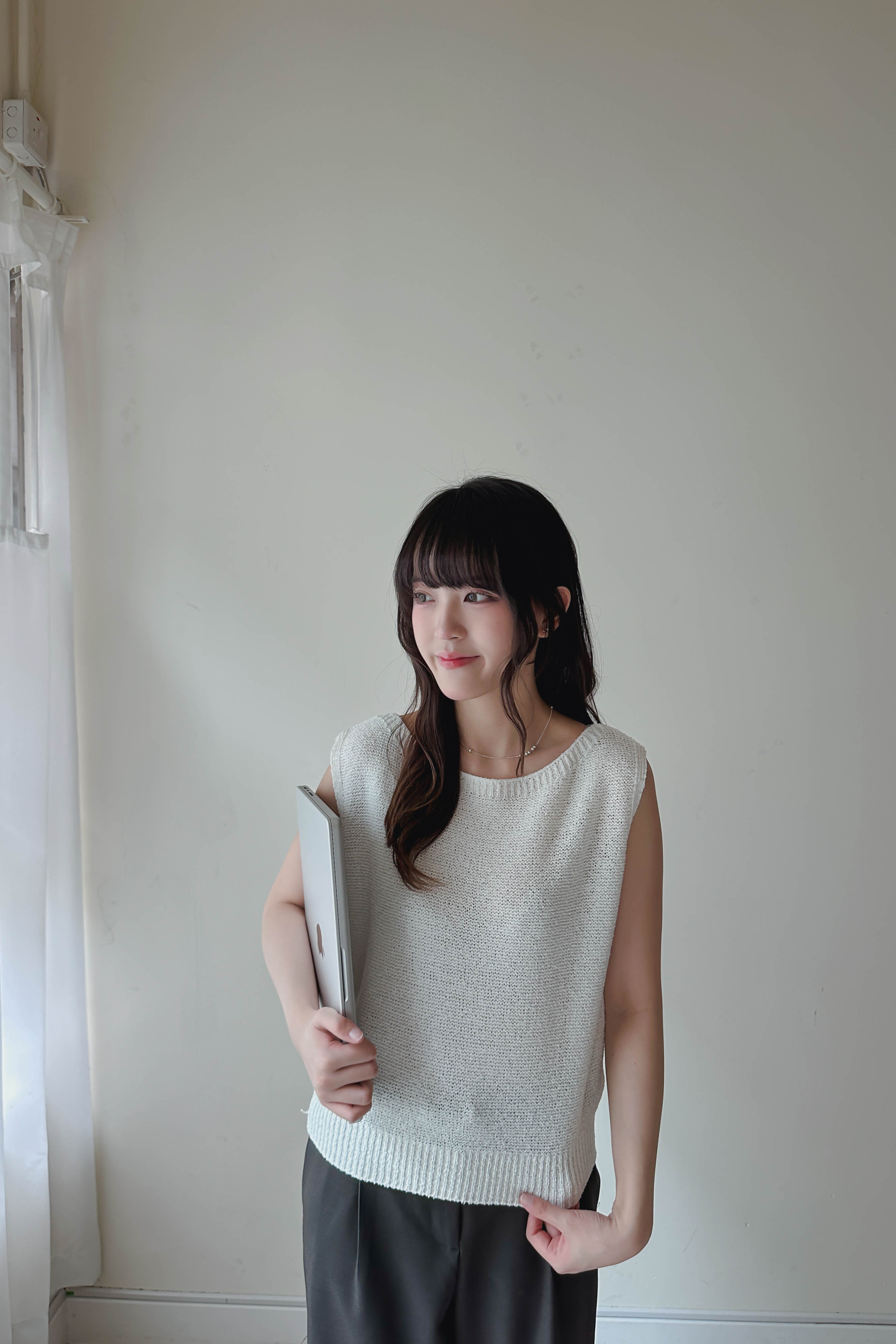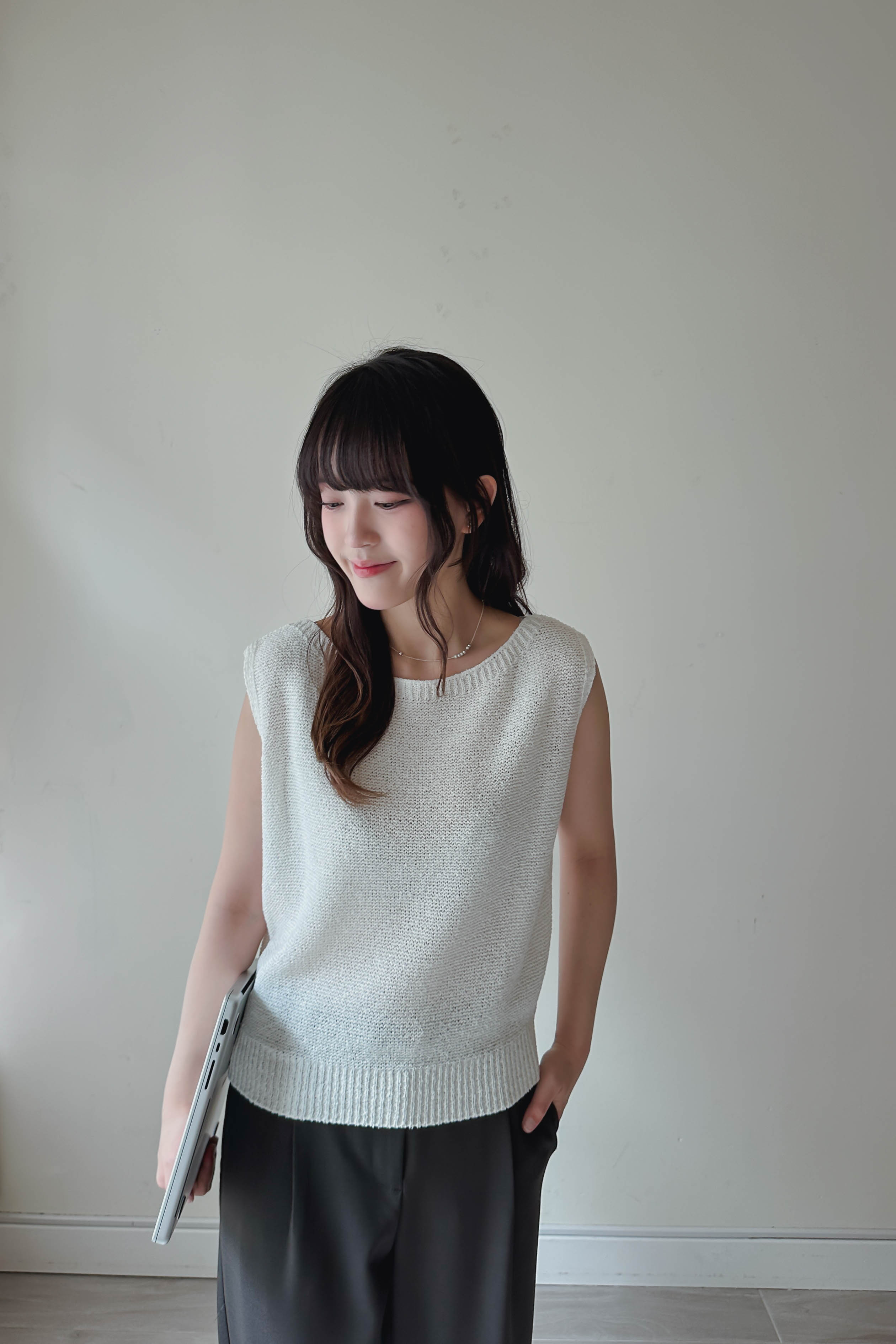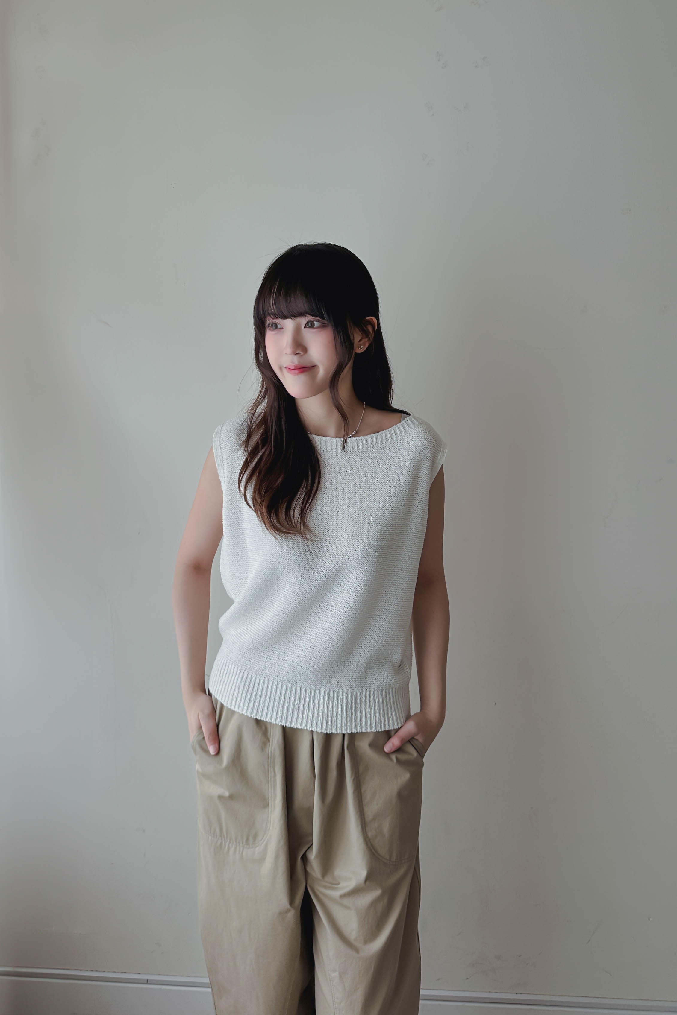 微落肩船領針織背心 (四色)