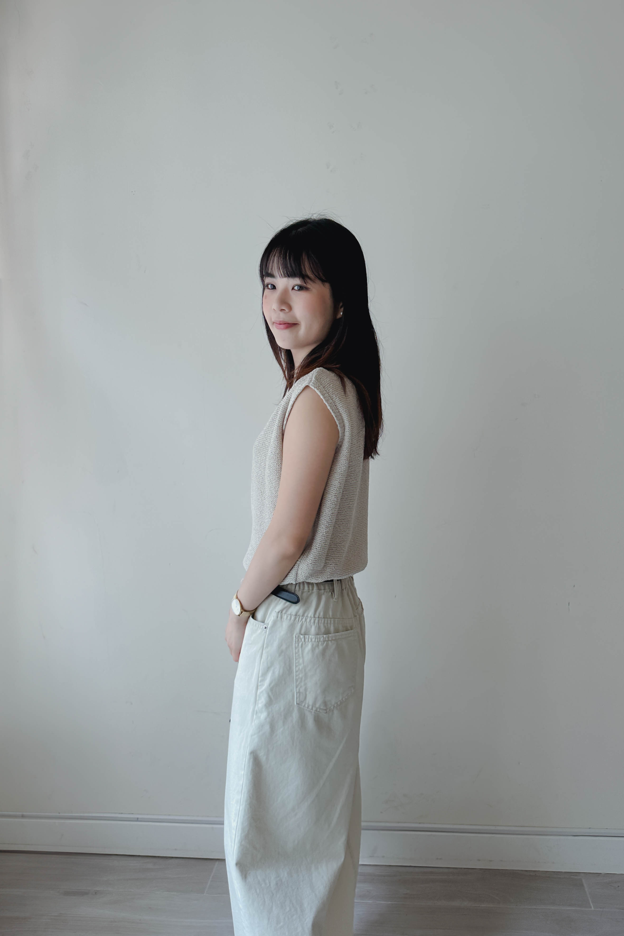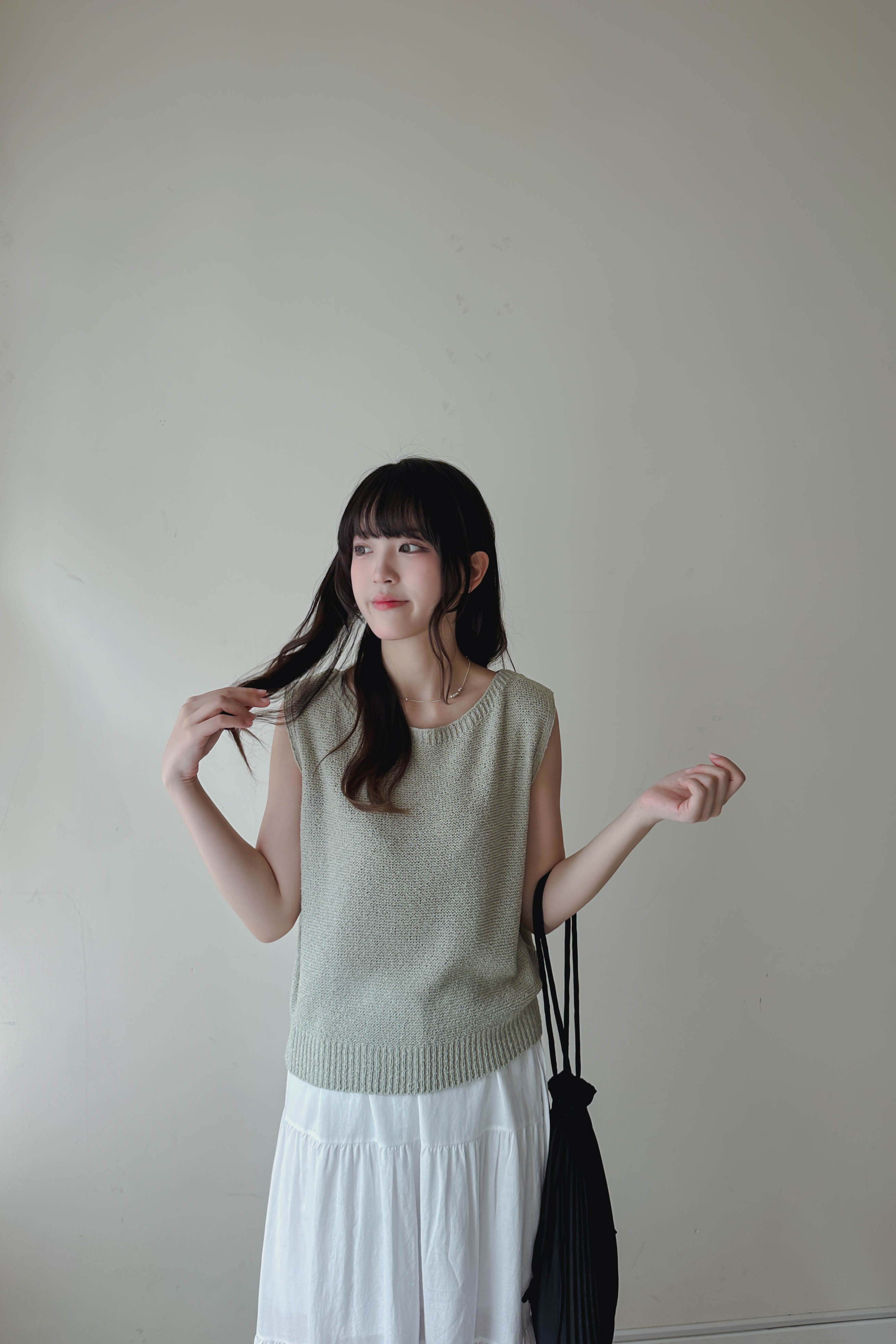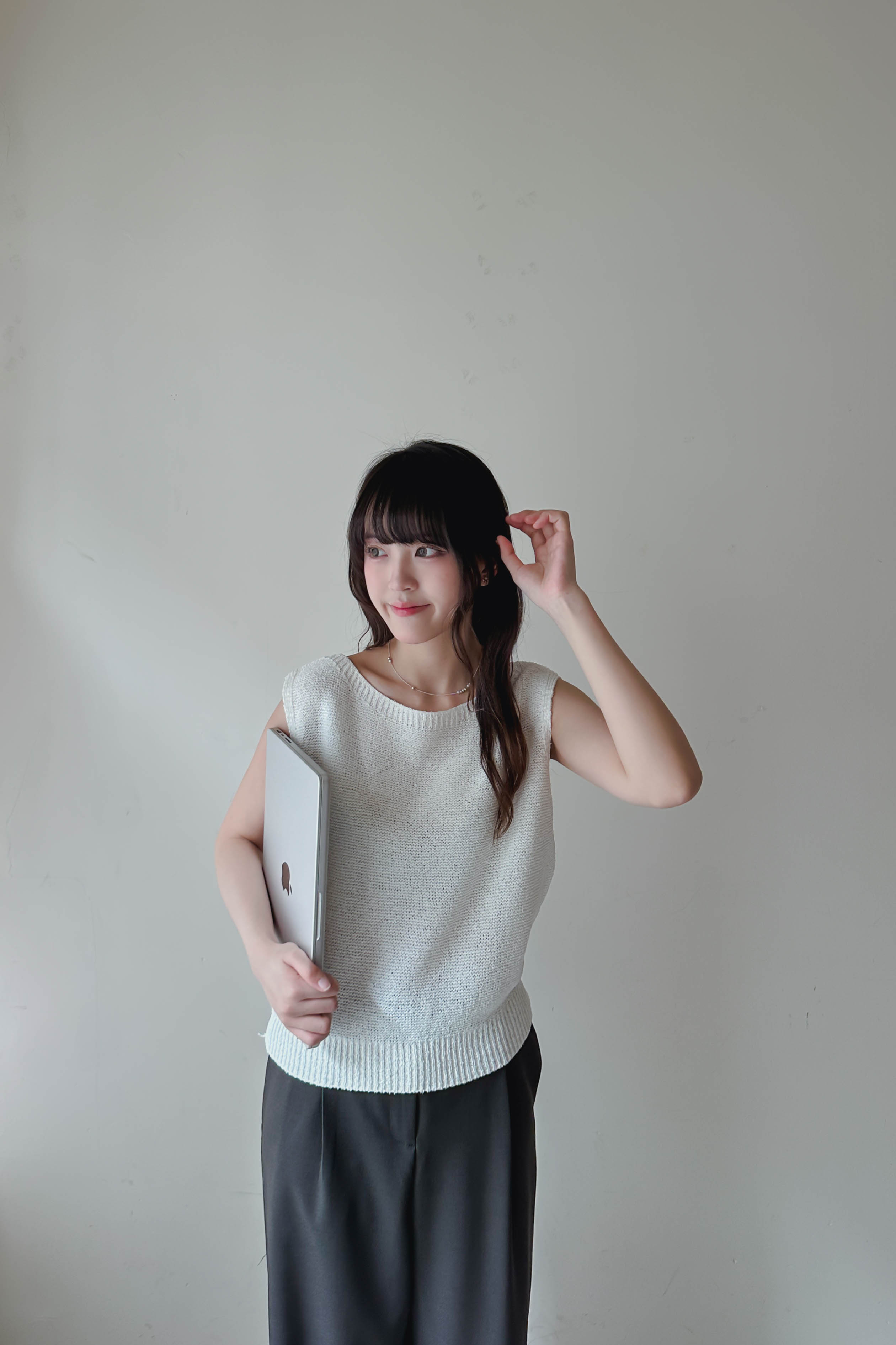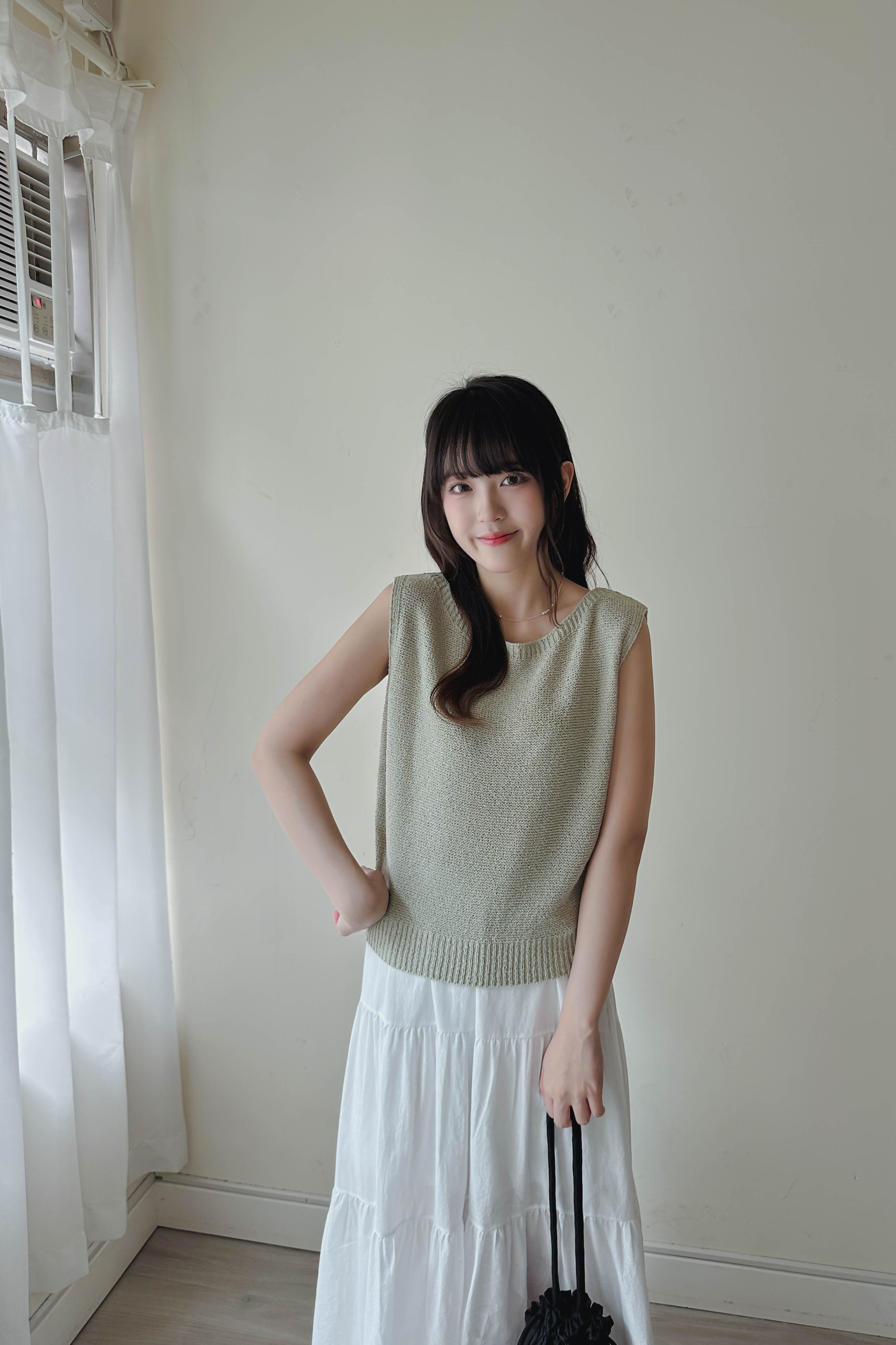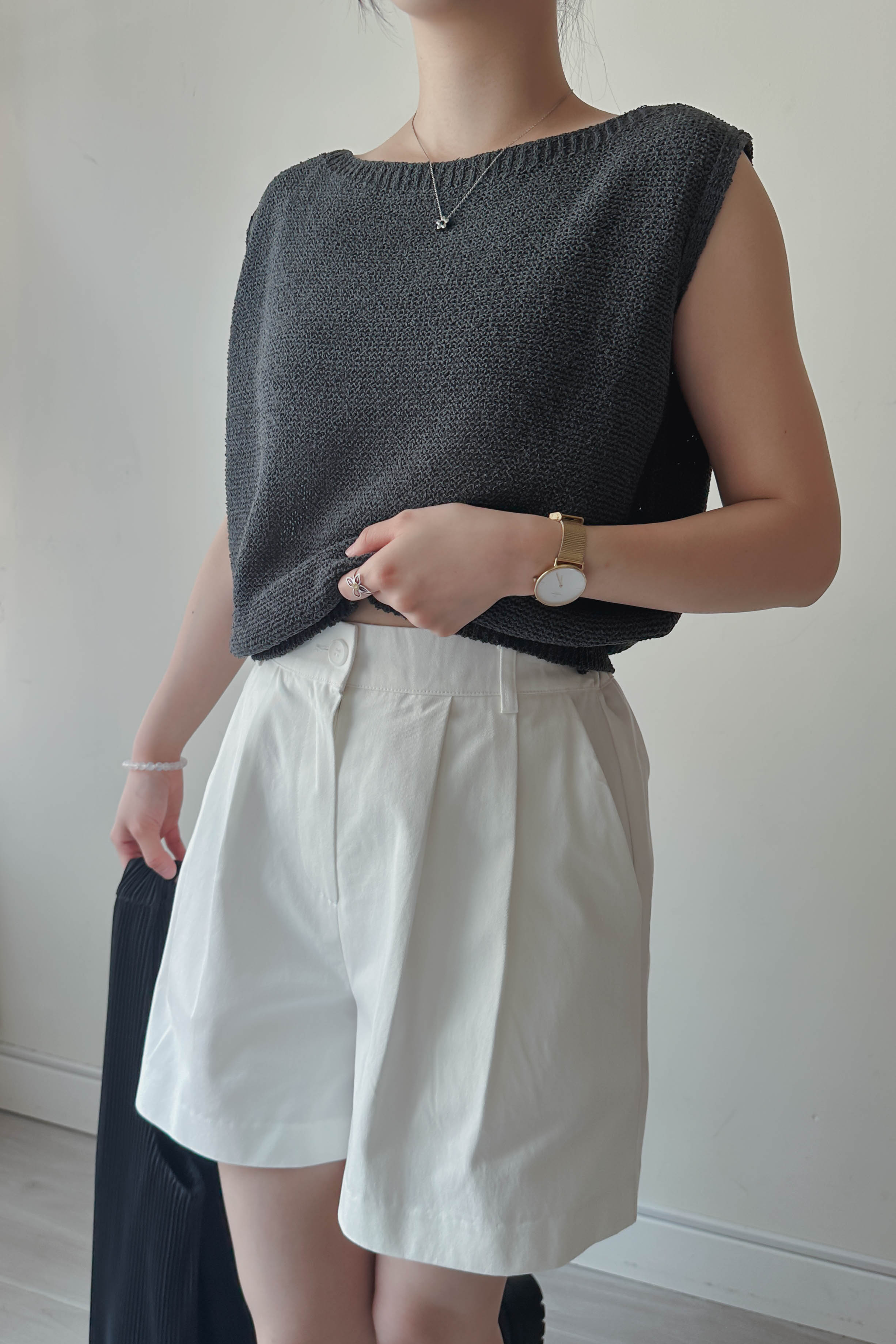 微落肩船領針織背心 (四色)