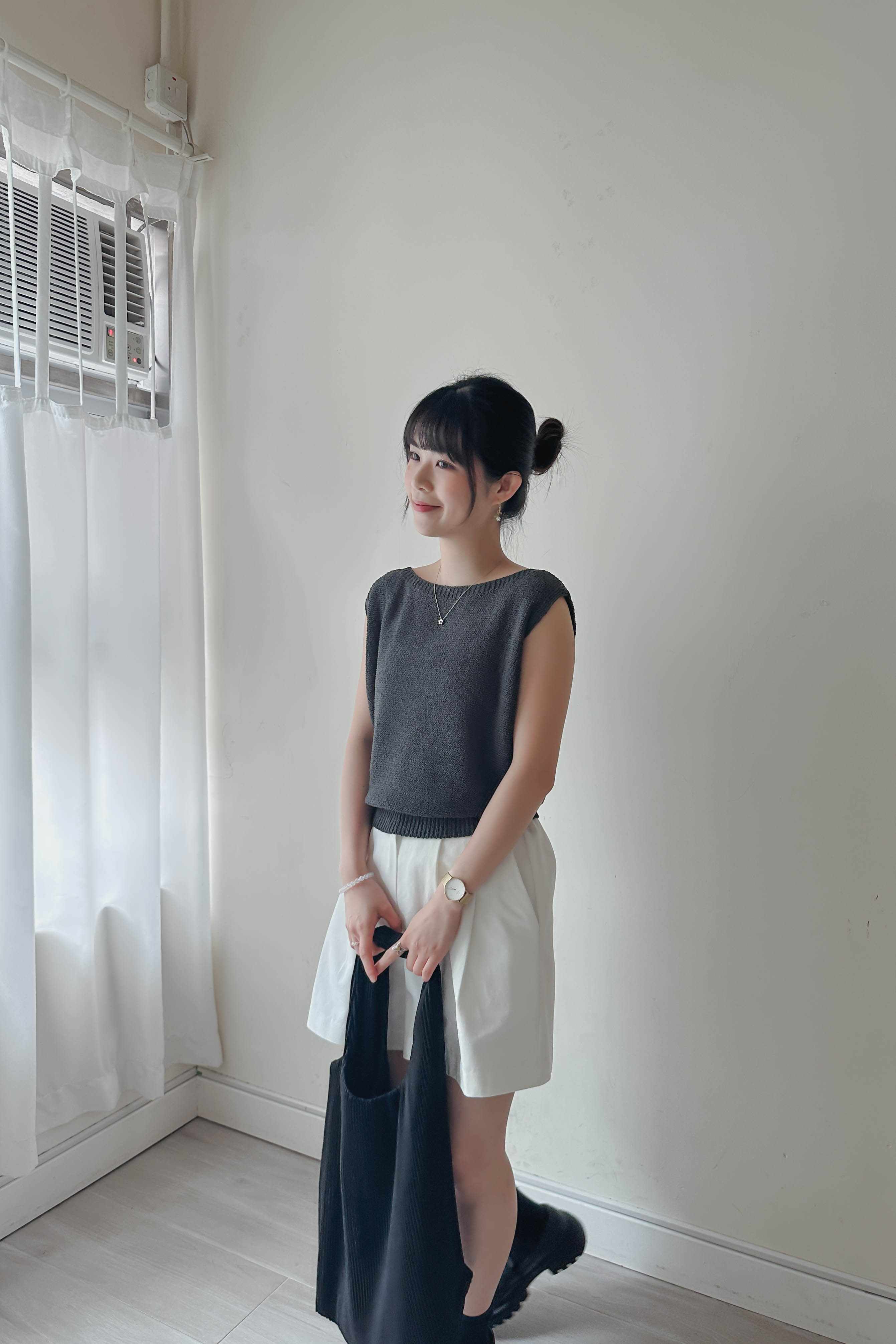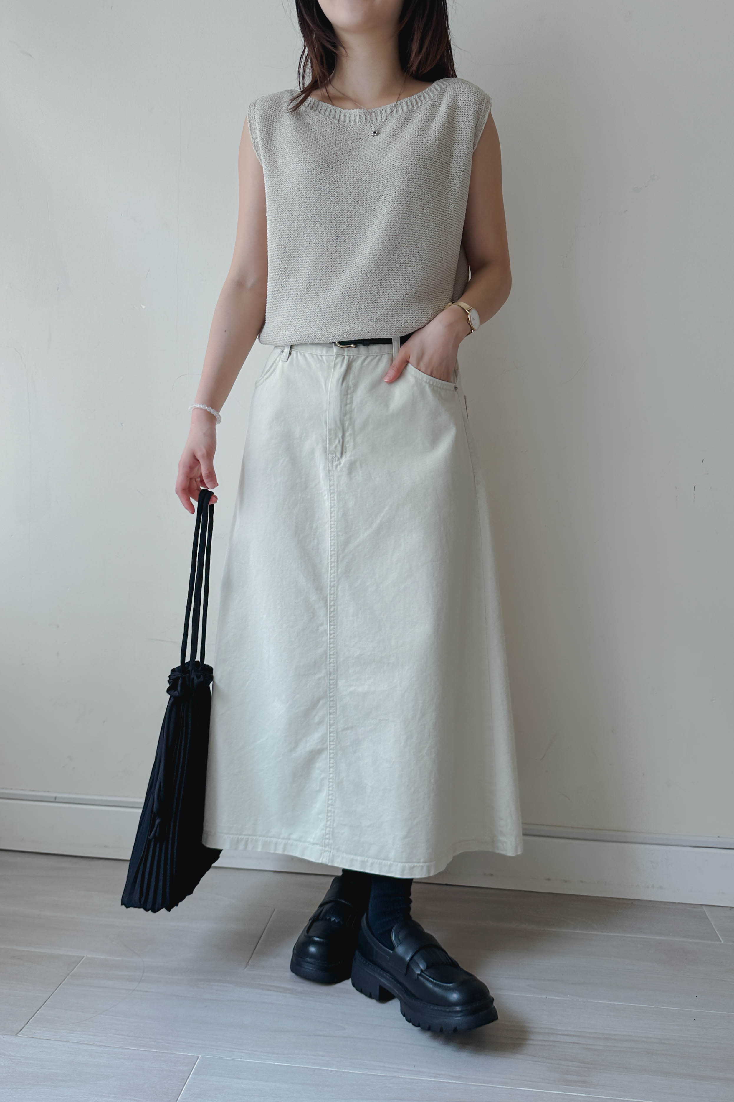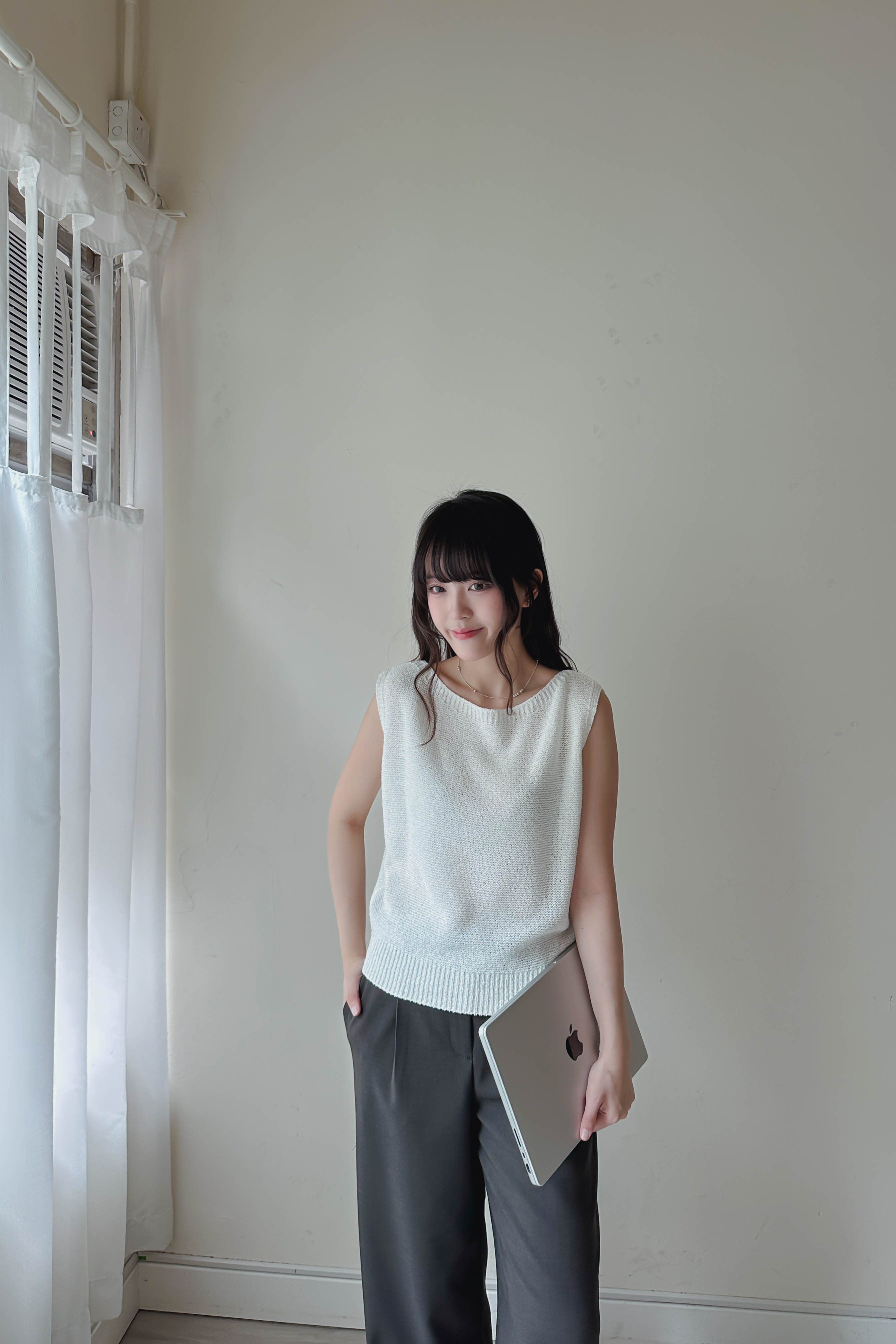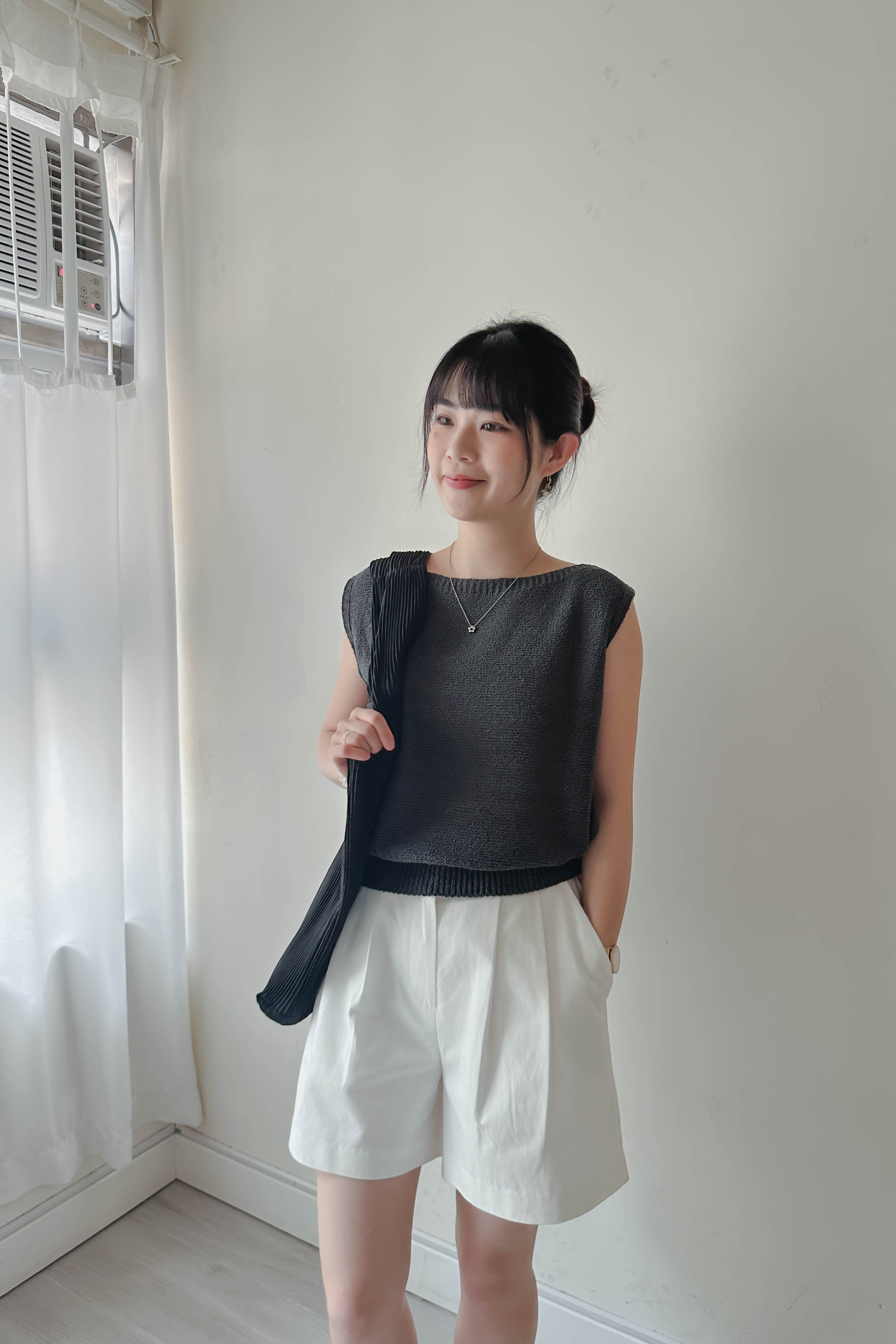 微落肩船領針織背心 (四色)