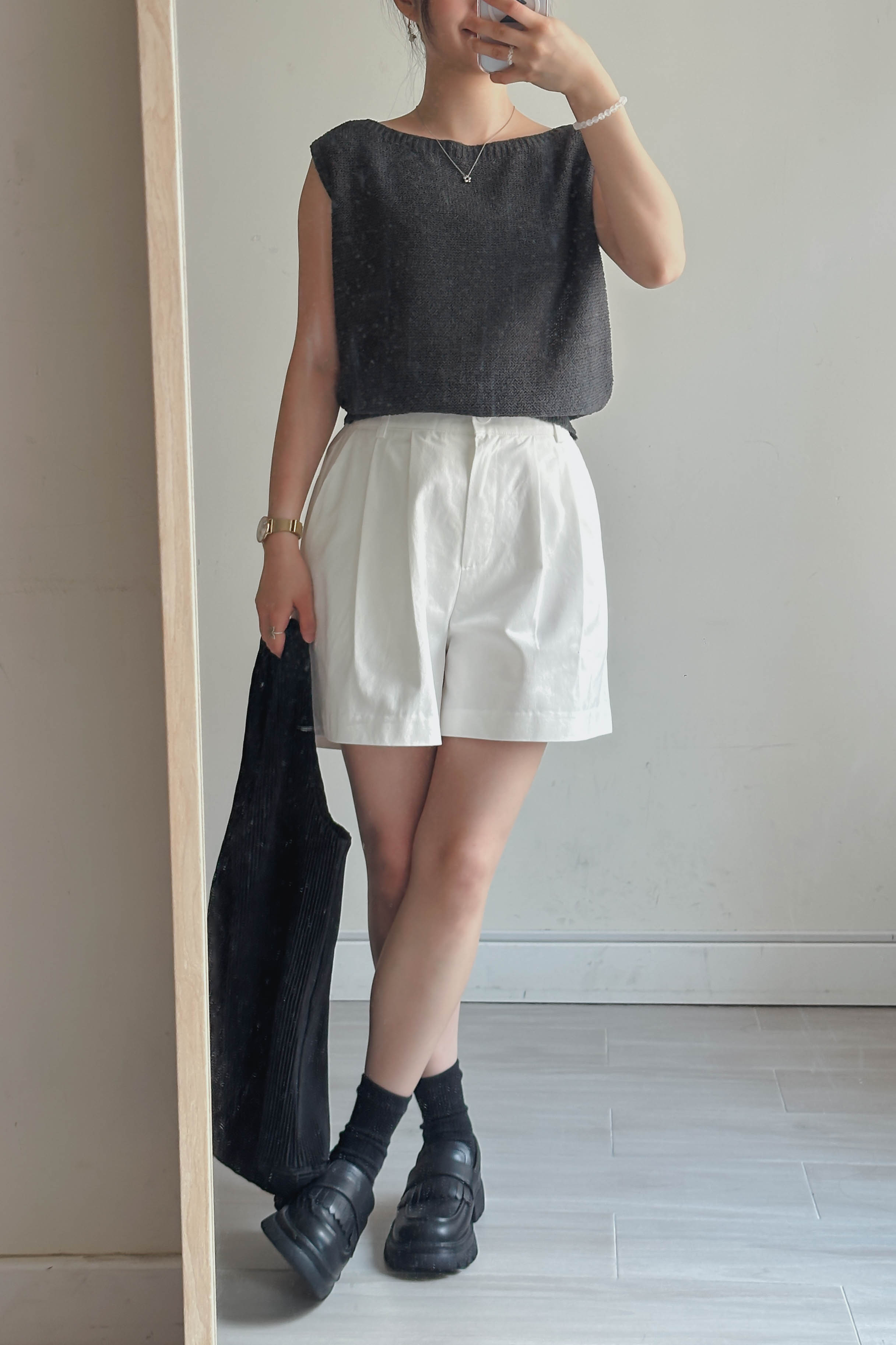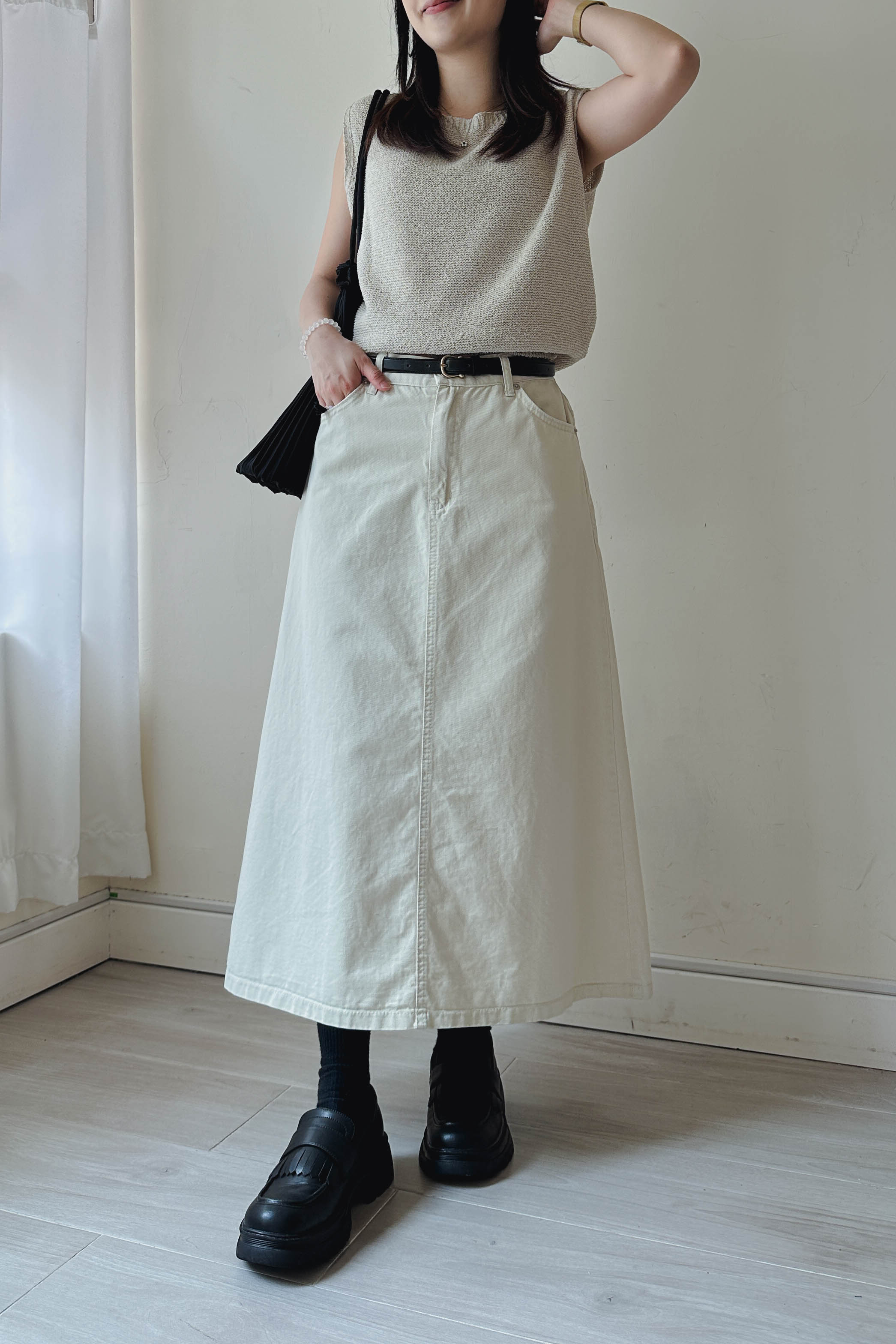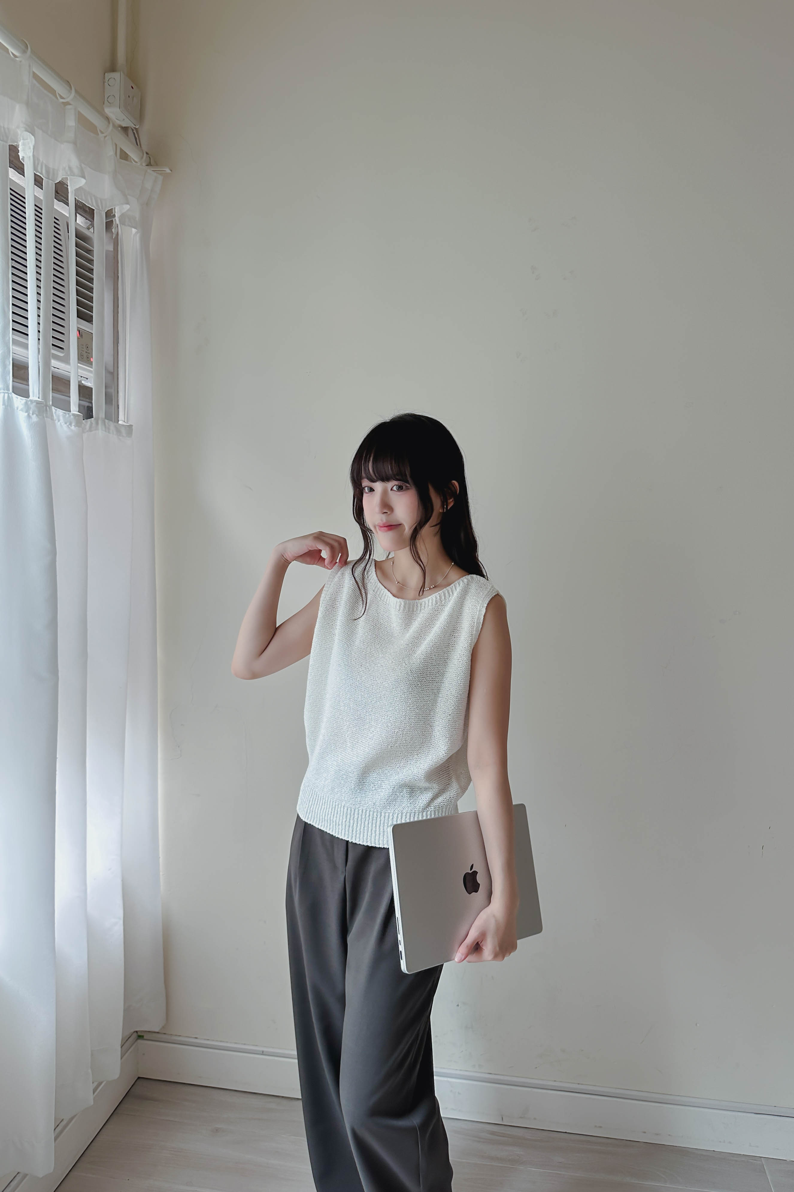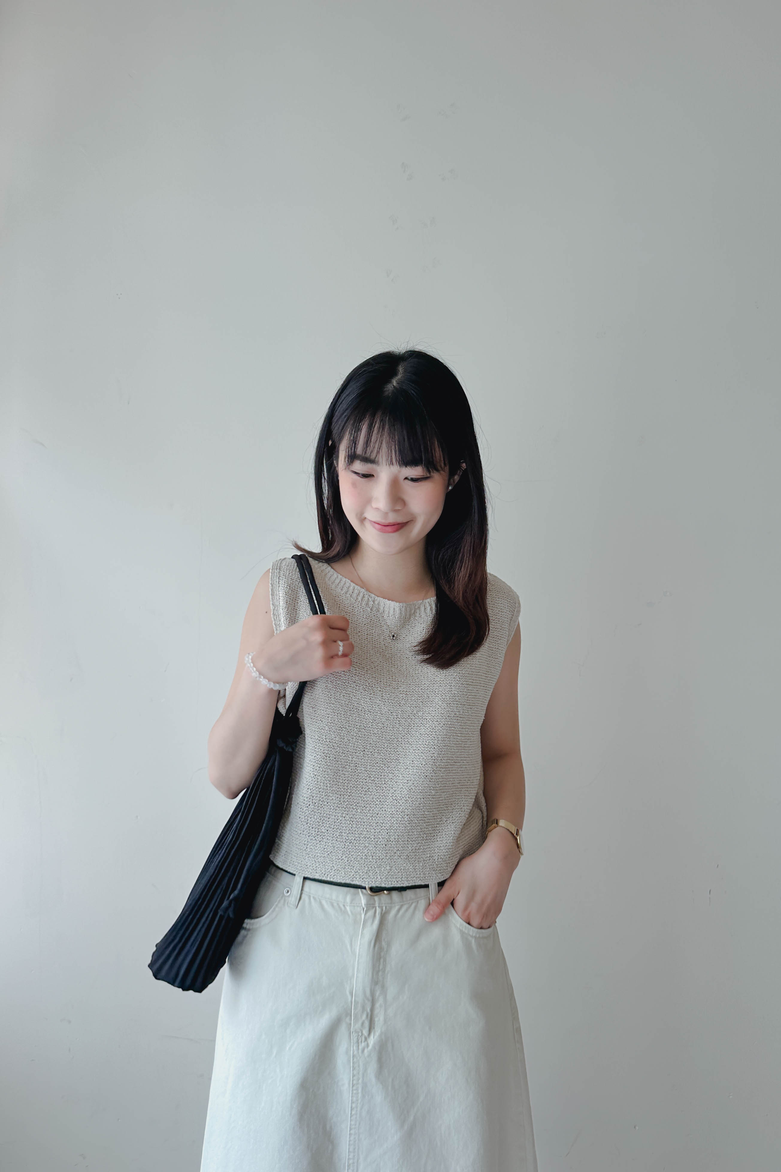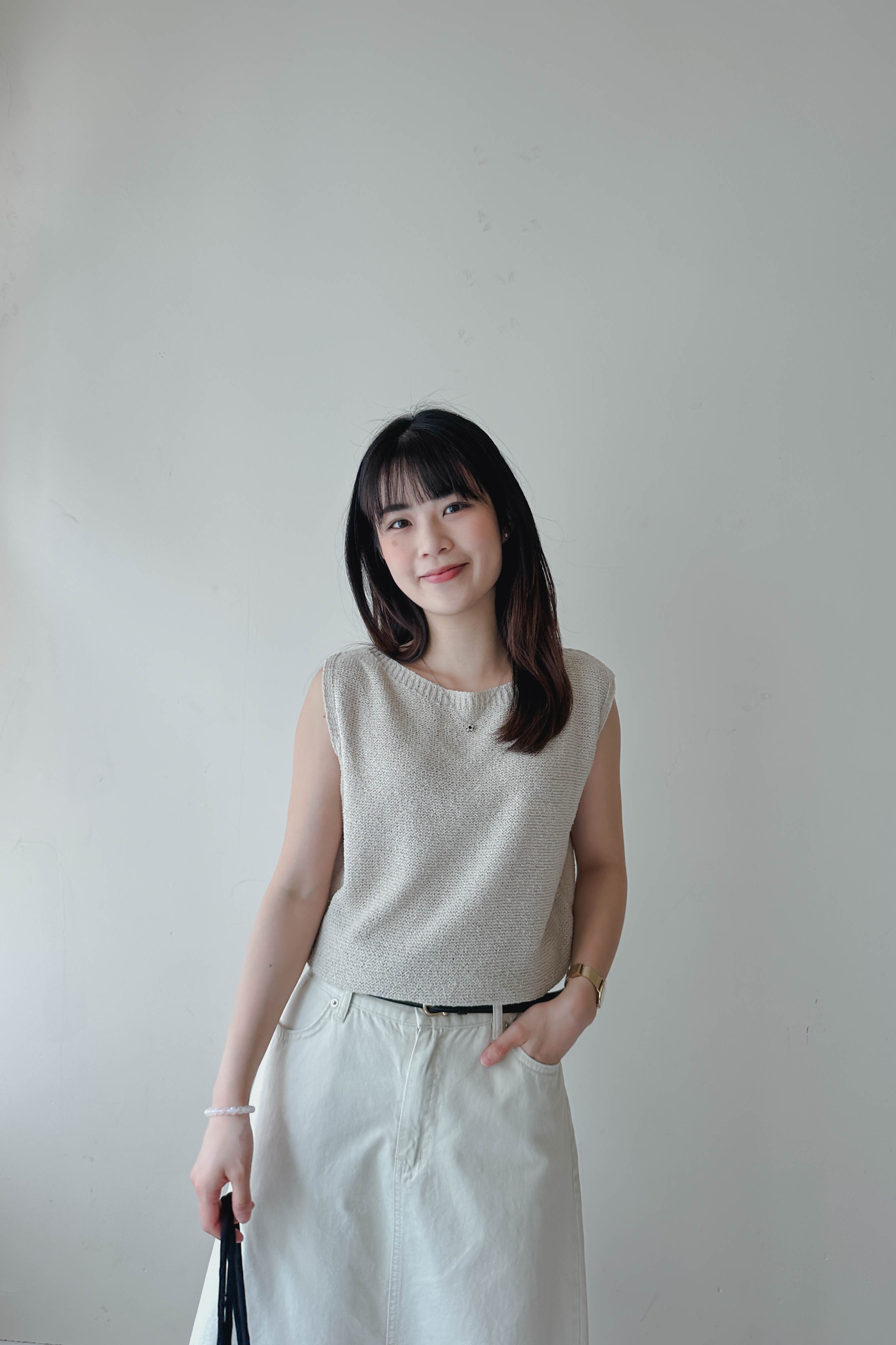 微落肩船領針織背心 (四色)