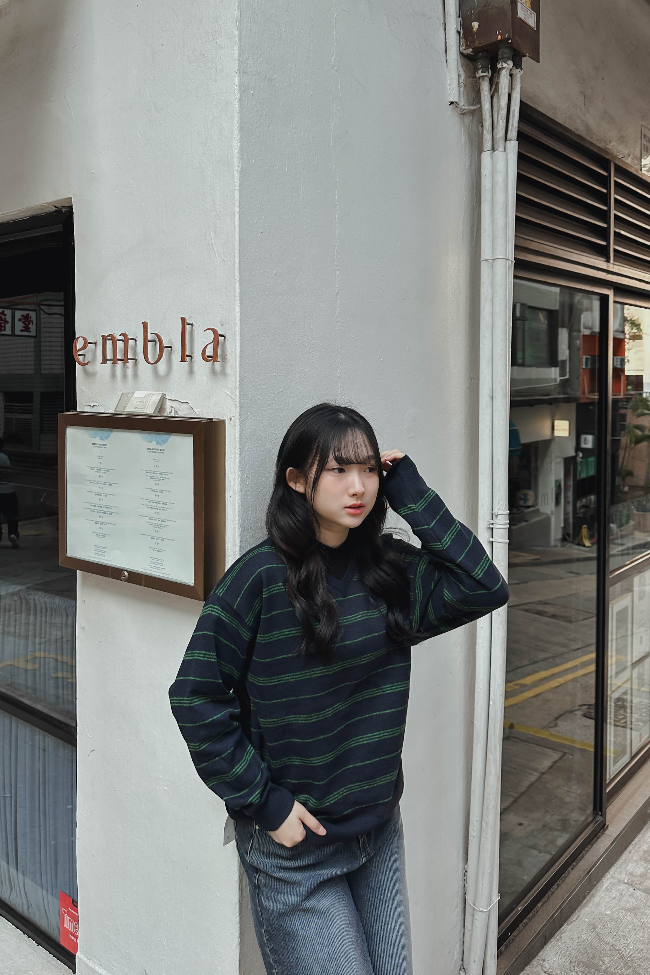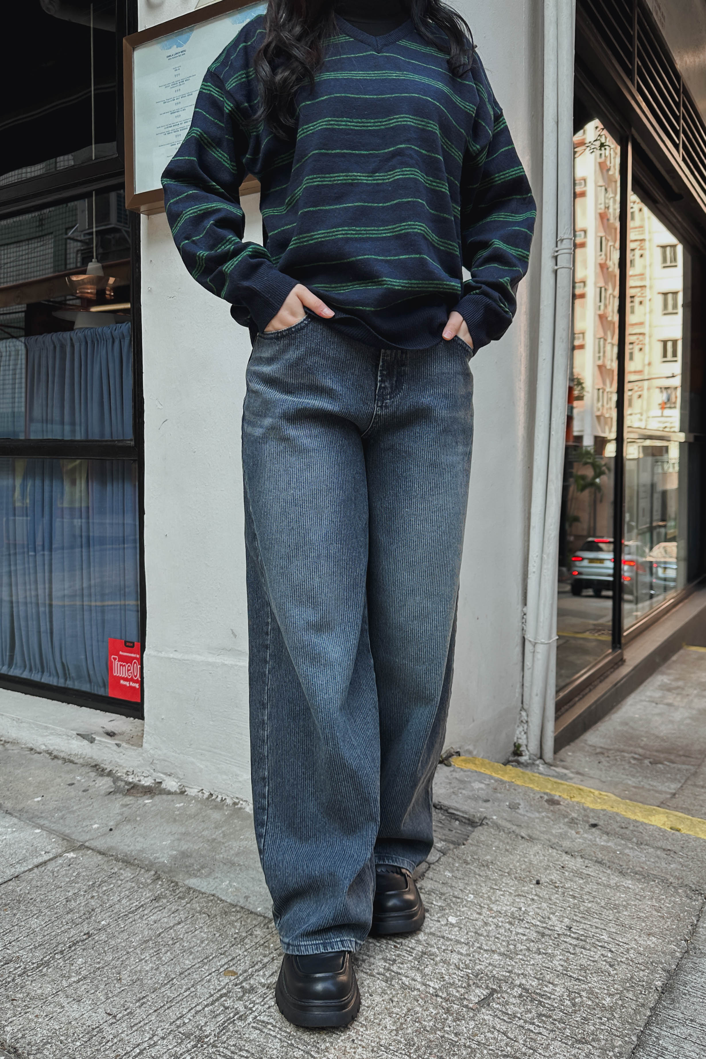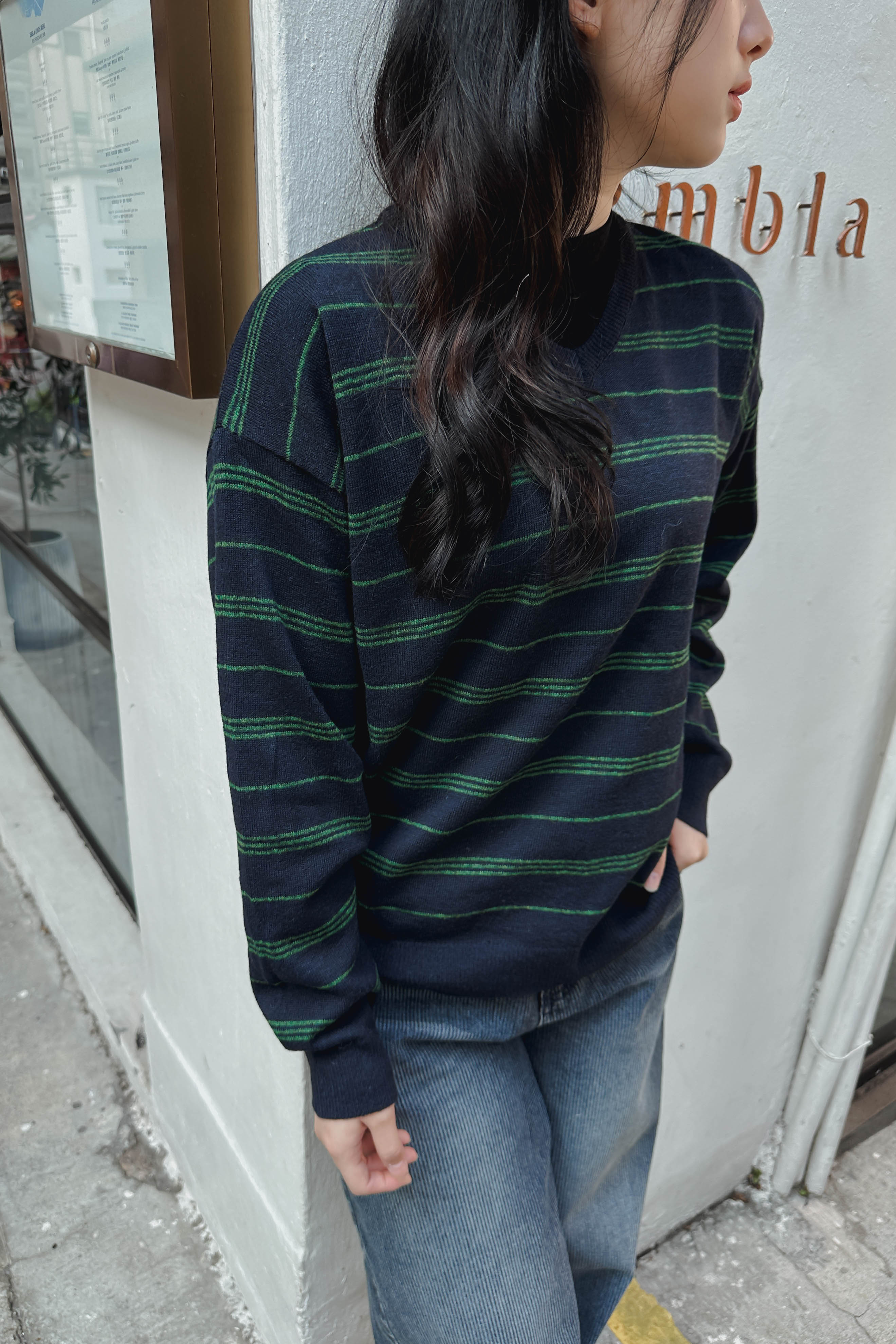 英倫拼色橫間V領冷衫 (兩色入)