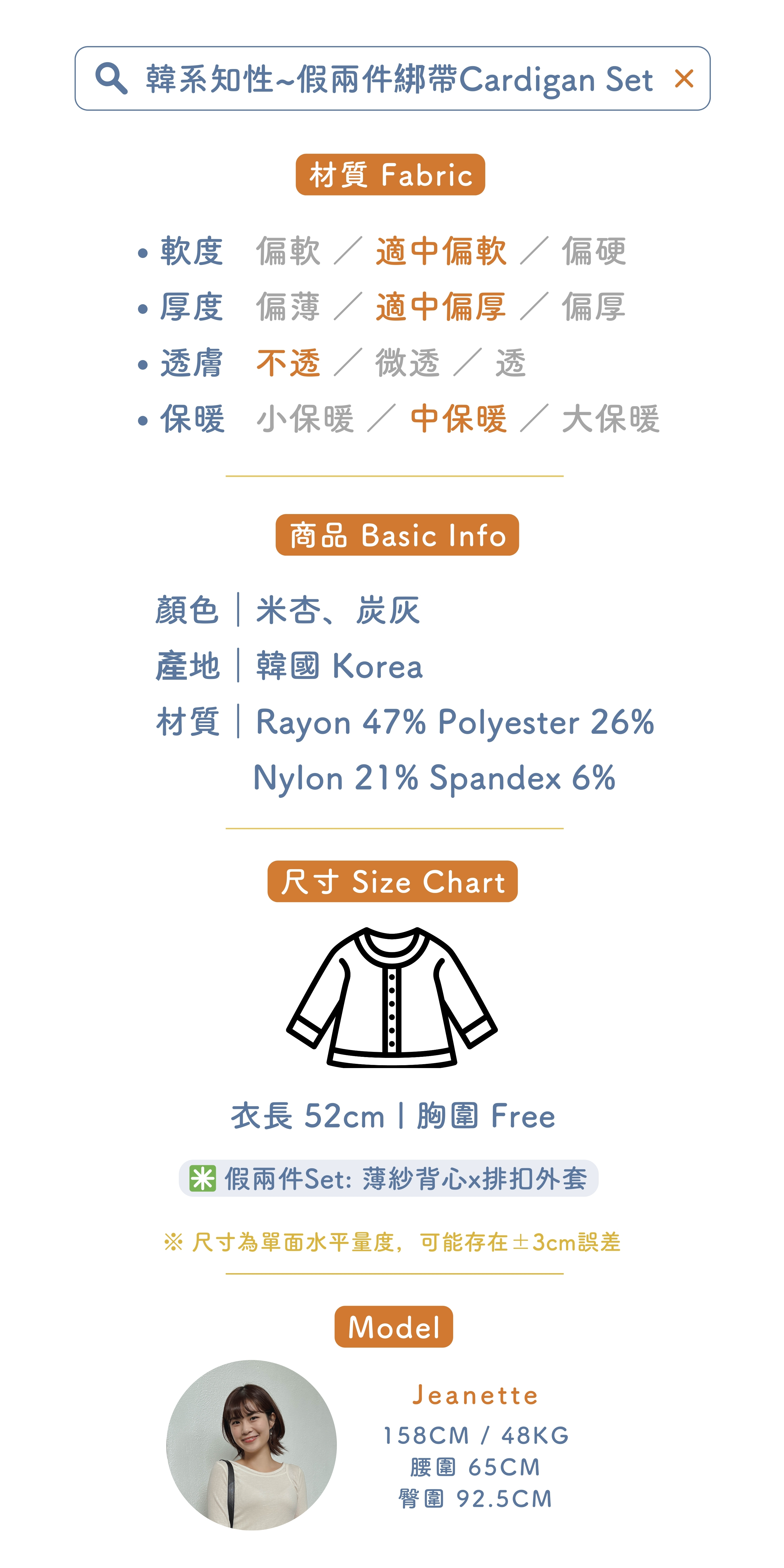 韓系氣質~假兩件綁帶Cardigan Set (兩色入)