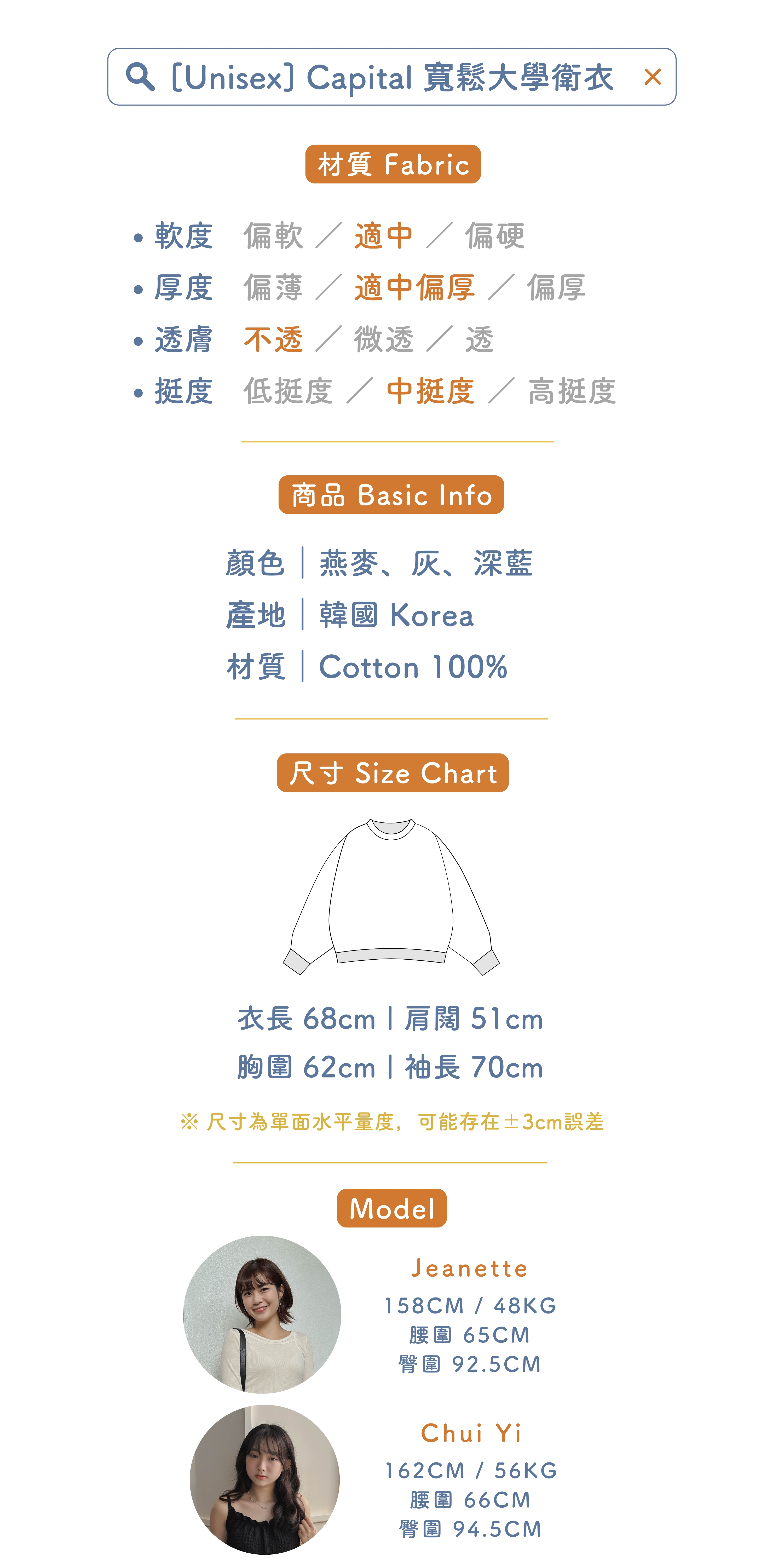 [Unisex] Capital 寬鬆大學衛衣 (三色入)