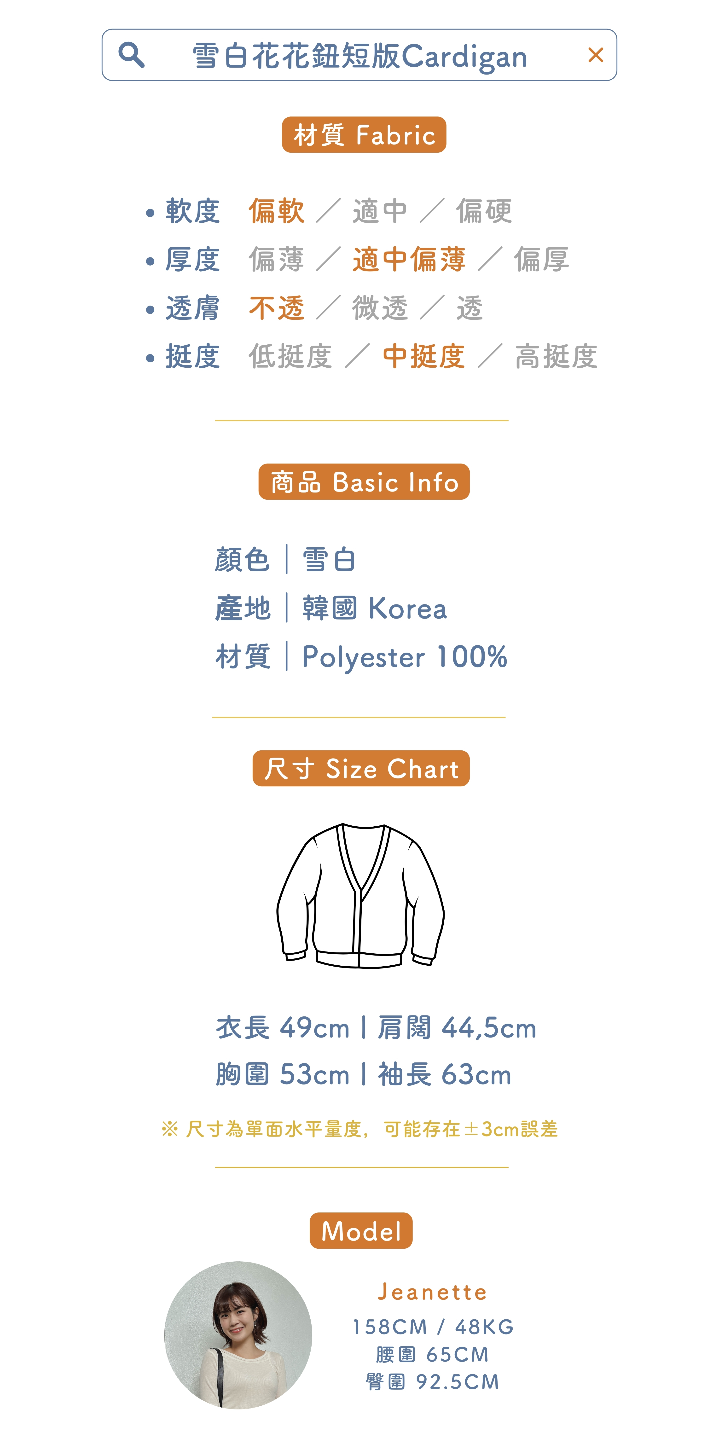 雪白花花鈕短版Cardigan