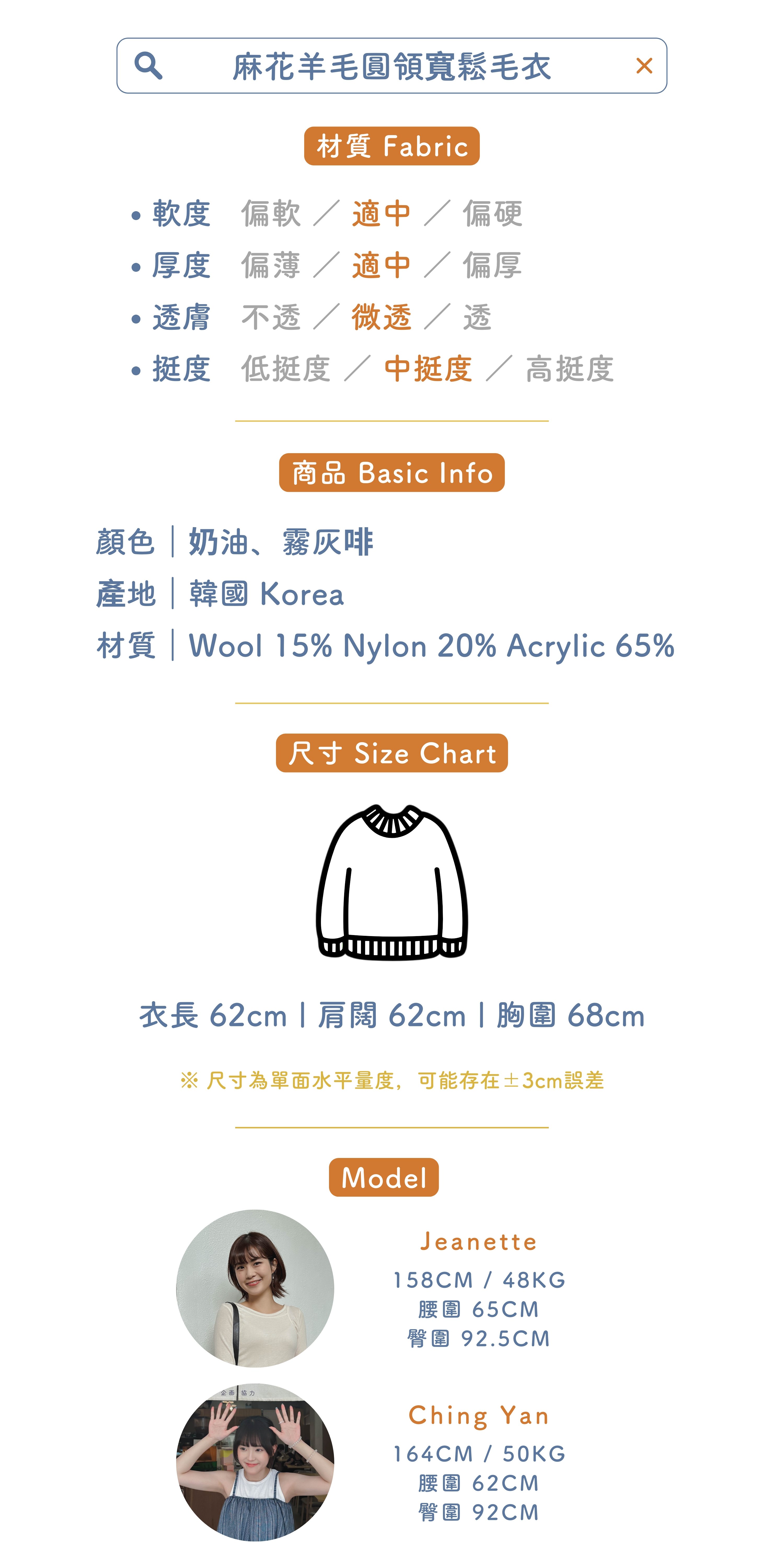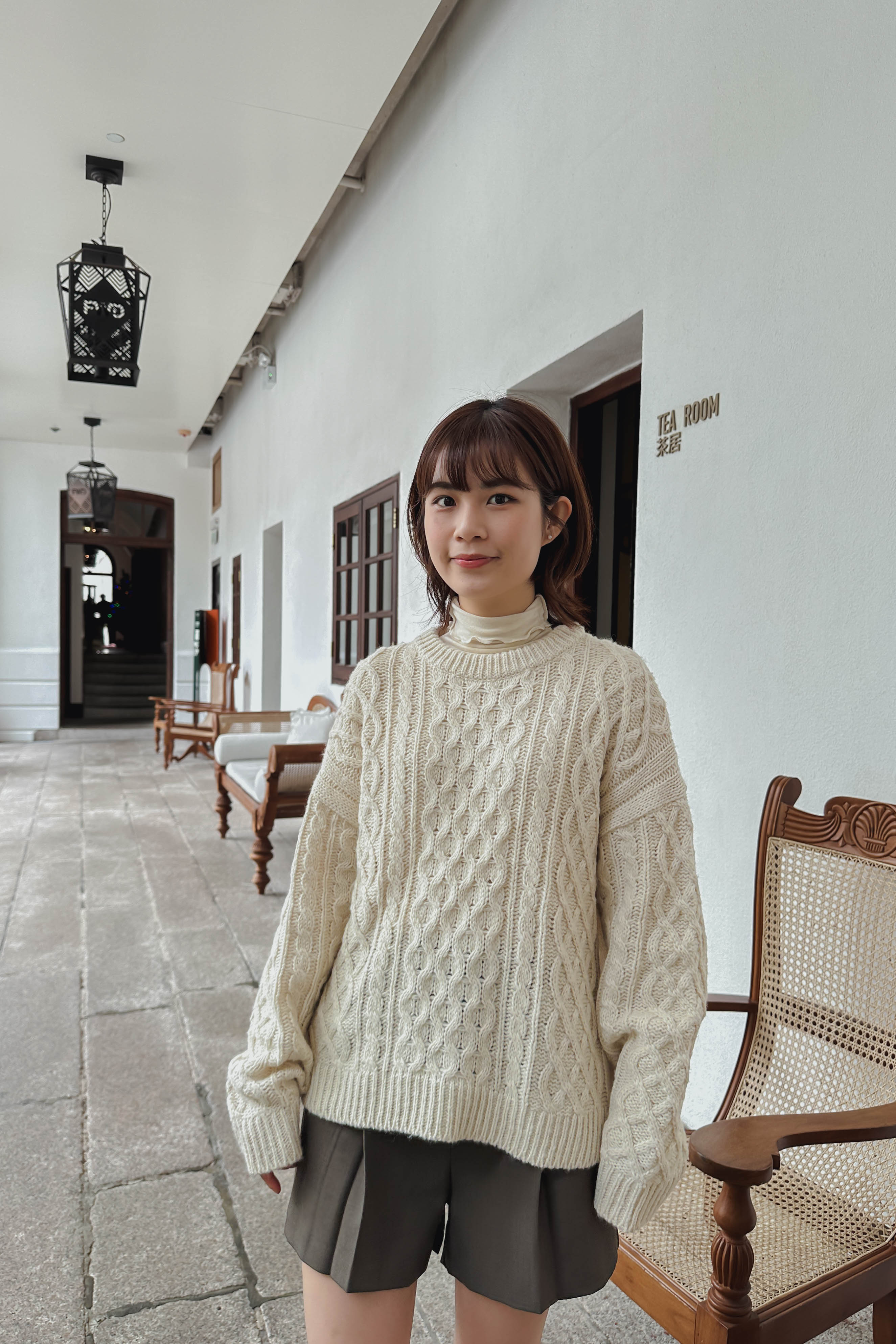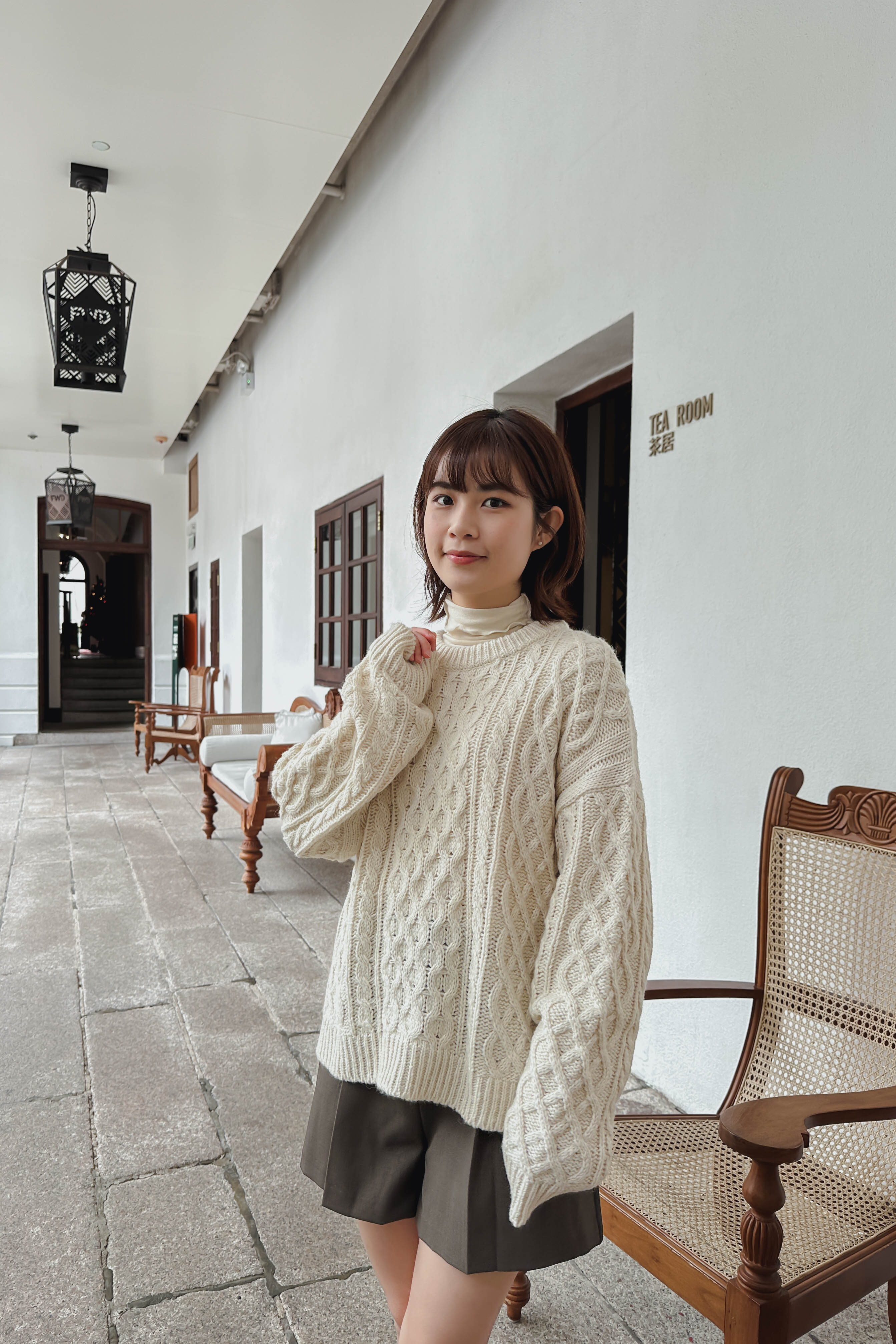 麻花羊毛圓領寬鬆毛衣 (兩色入)