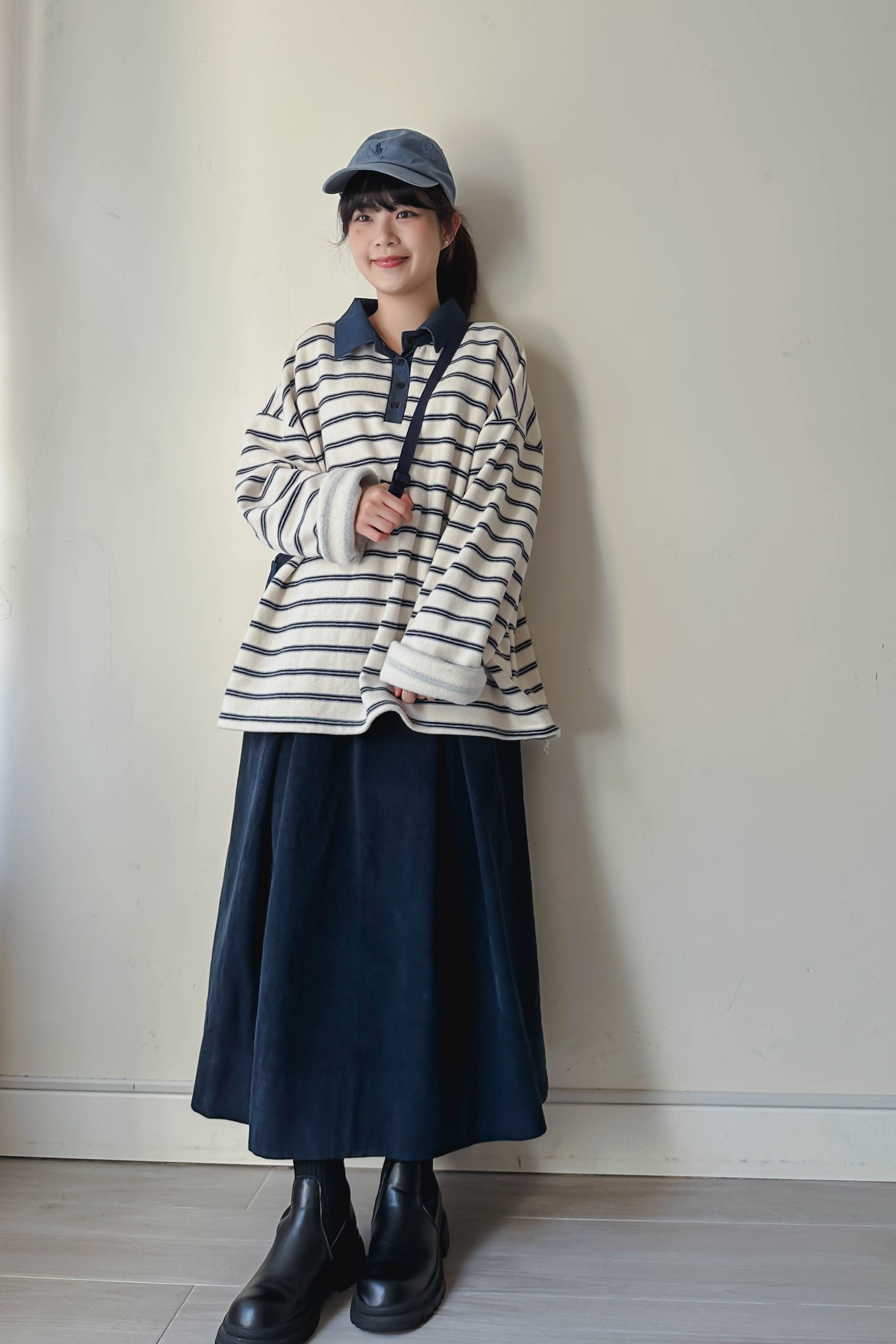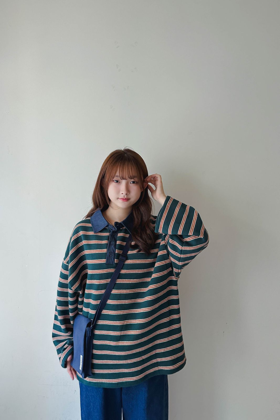 牛仔翻領粗間寬鬆衛衣 (兩色入)