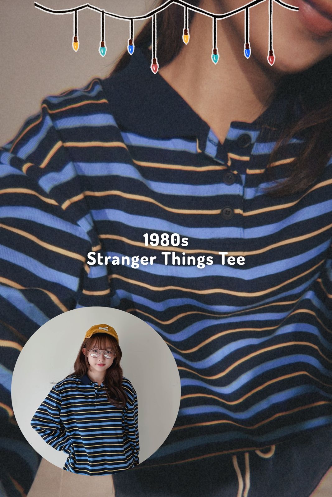 1980s翻領條紋寬鬆上衣 (兩色入)