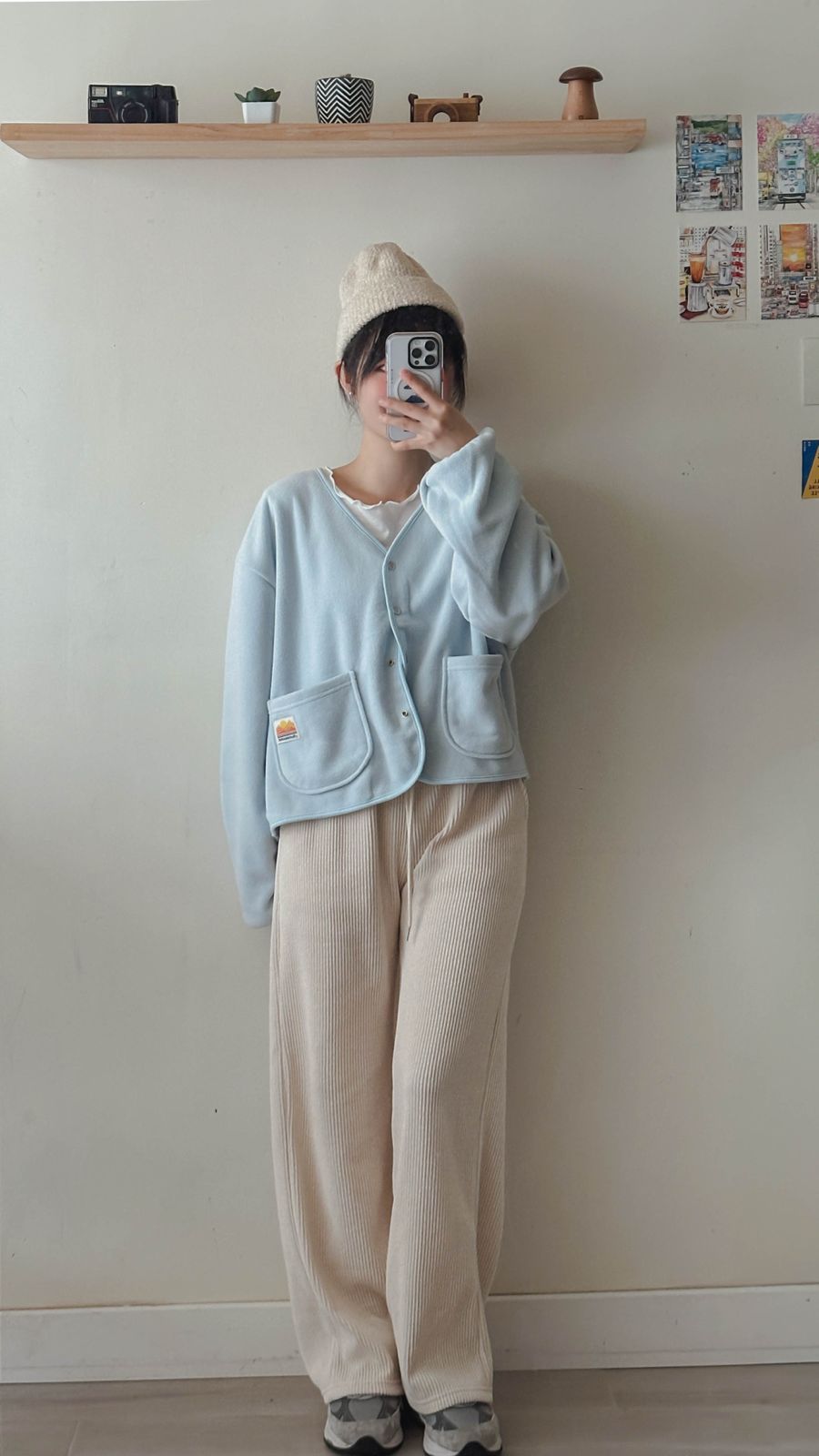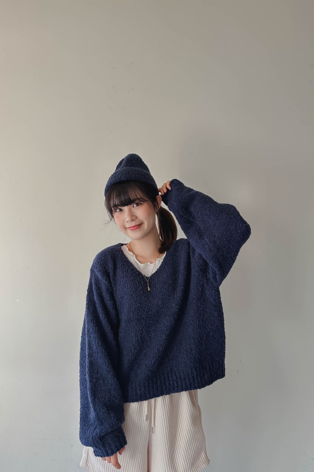 軟滑毛茸茸V領薄冷衫 (三色入)