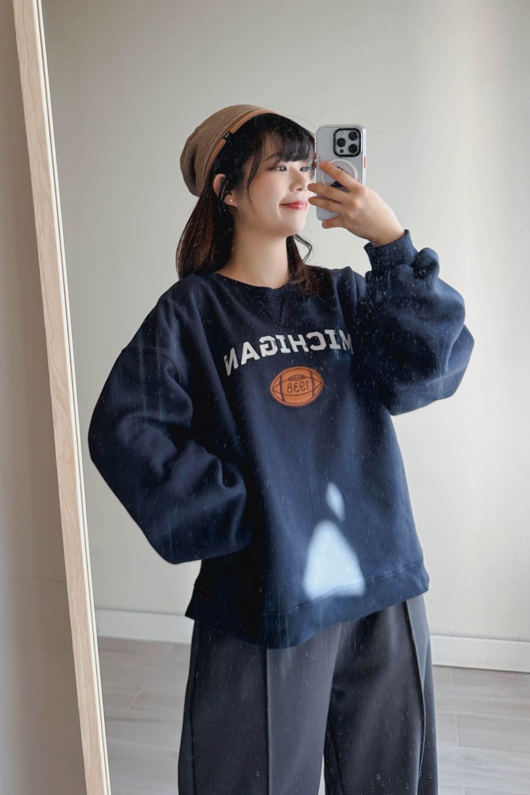 欖球撞色Logo絨毛衛衣 (兩色入)